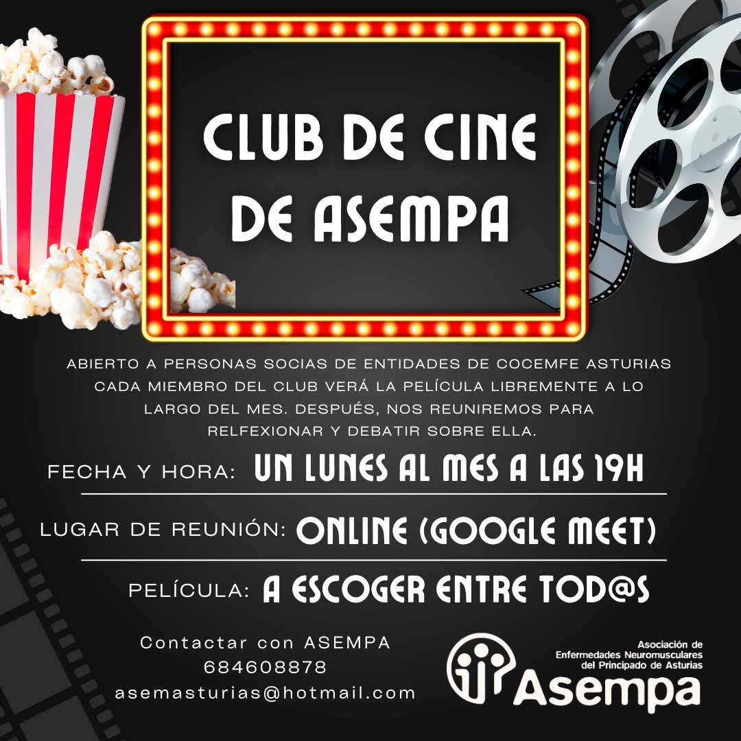 El Club de Cine de ASEMPA busca ampliar su participación e invita a personas socias de asociaciones integradas en COCEMFE Asturias a sumarse a esta iniciativa cultural y participativa.