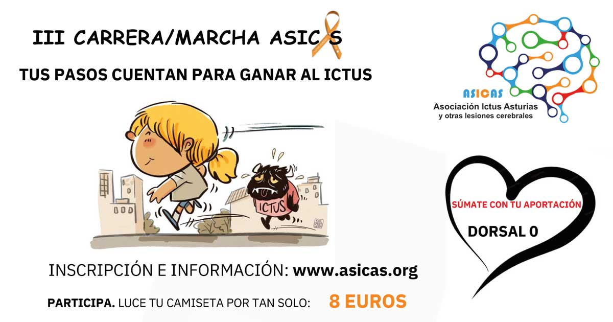 La Asociación Ictus de Asturias y otras lesiones cerebrales adquiridas (ASICAS), en colaboración con varios Ayuntamientos, organiza la III Edición de la Marcha Solidaria para ganar al ICTUS, una iniciativa para apoyar a las personas afectadas por el ictus y sensibilizar sobre su prevención y atención.